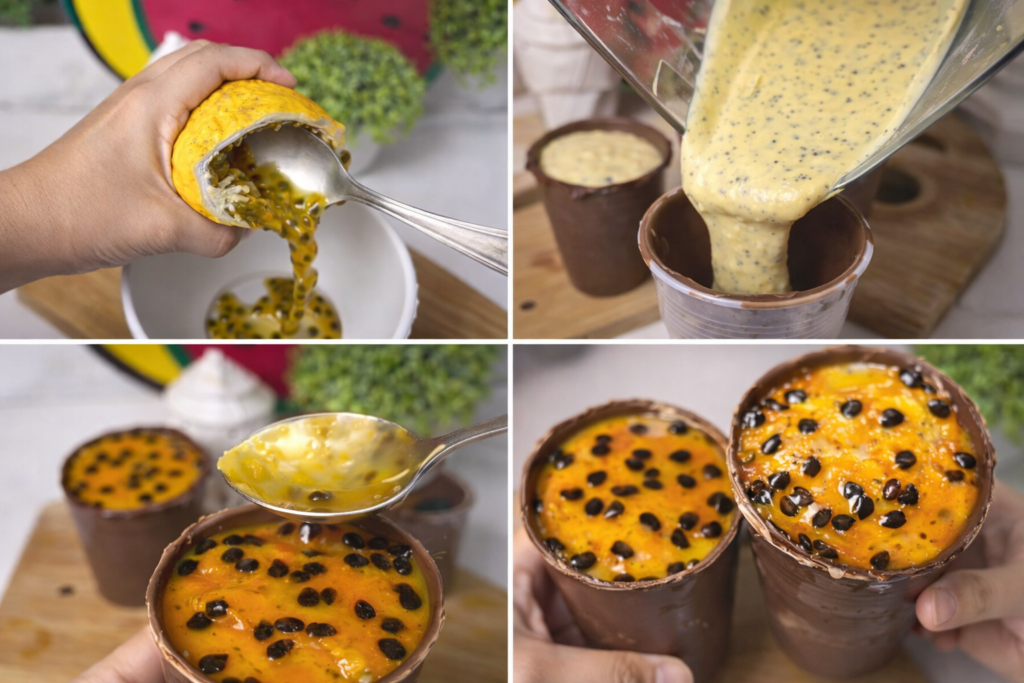 Ei, meus amigos que amam um docinho azedinho com chocolate! 😍 Imagina só: um copinho crocante de chocolate que você come junto com o recheio, sem precisar lavar louça depois, e o sabor explosivo de maracujá cremoso contrastando com o chocolate derretendo na boca. É aquela sobremesa que chega na mesa e some em segundos, porque ninguém resiste!