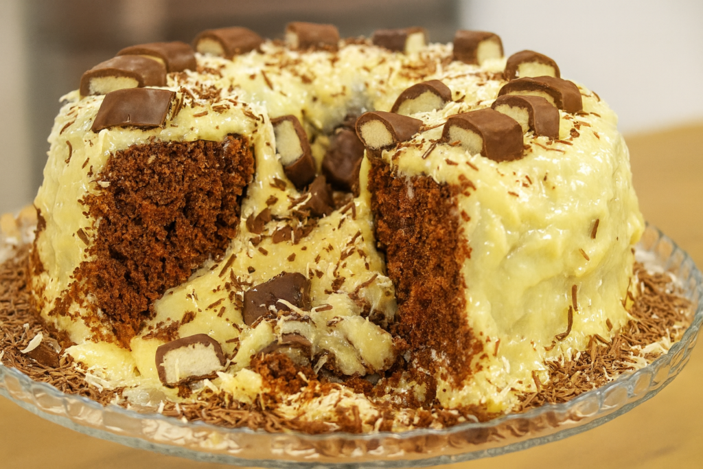 Minha gente, chegou o bolo que acabou com qualquer concorrência na minha casa: o Prestígio RECHEADO E COM PEDAÇOS DE PRESTÍGIO! Sabe aquele chocolate Prestígio que a gente guarda escondido? Pois é… eu corto em cubinhos generosos e jogo no recheio e na massa! O resultado? A cada garfada você sente o coco raladinho e o chocolate derretendo na boca. É tão absurdamente gostoso que já virou lei: Natal sem esse bolo aqui ninguém aceita mais kkkkk. Vamos fazer juntos?