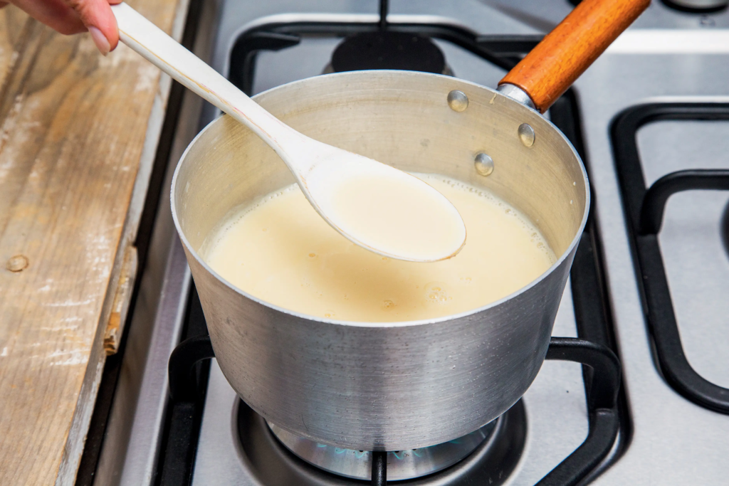 - Esfrie e guarde com capricho Transfira pra um potinho de vidro esterilizado (ou uma tigela coberta com filme plástico encostado na superfície, pra não criar película). Deixe esfriar em temperatura ambiente e leve à geladeira por 2 horas – vai firmar e ficar com a textura exata de leite condensado de caixinha!