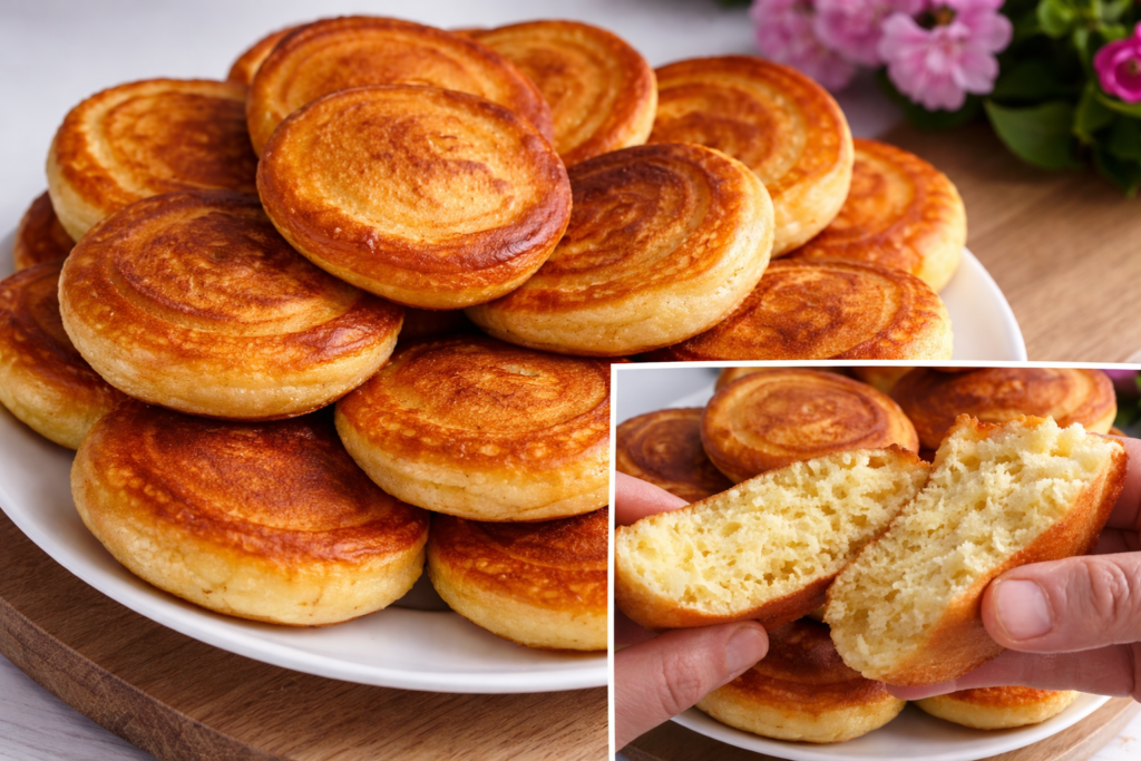 Essa massinha fica levemente dourada por fora, macia por dentro e mata a fome de verdade. Dá pra comer pura, com manteiga, mel, geleia, queijo, presunto ou até rechear depois de pronta.